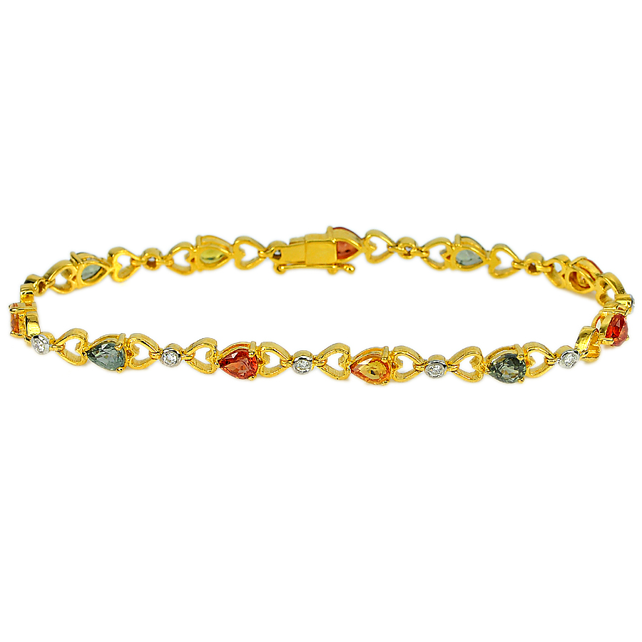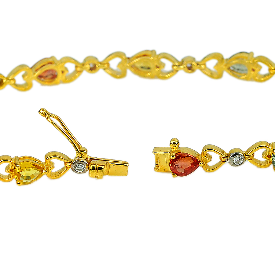 18K Solid Gold Bracelet with 5.44 Ct Natural Songea Sapphire and diamond 7 Inch.