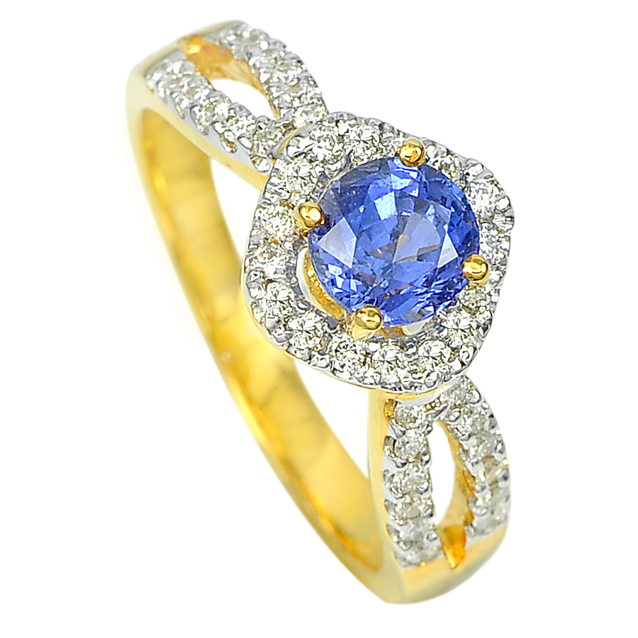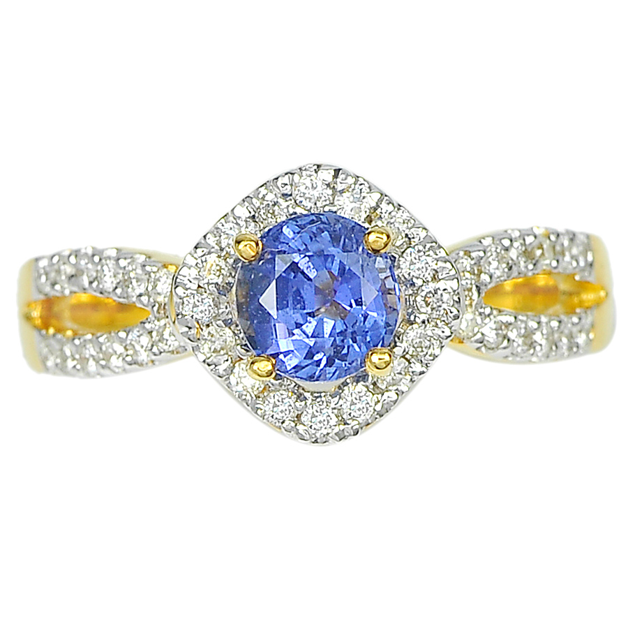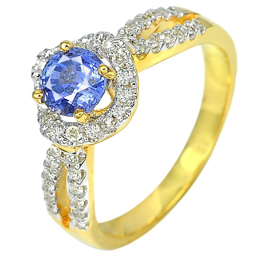 1.02 Ct. Natural Blue Sapphire with White Diamond 18K Solid Gold Ring Size 7