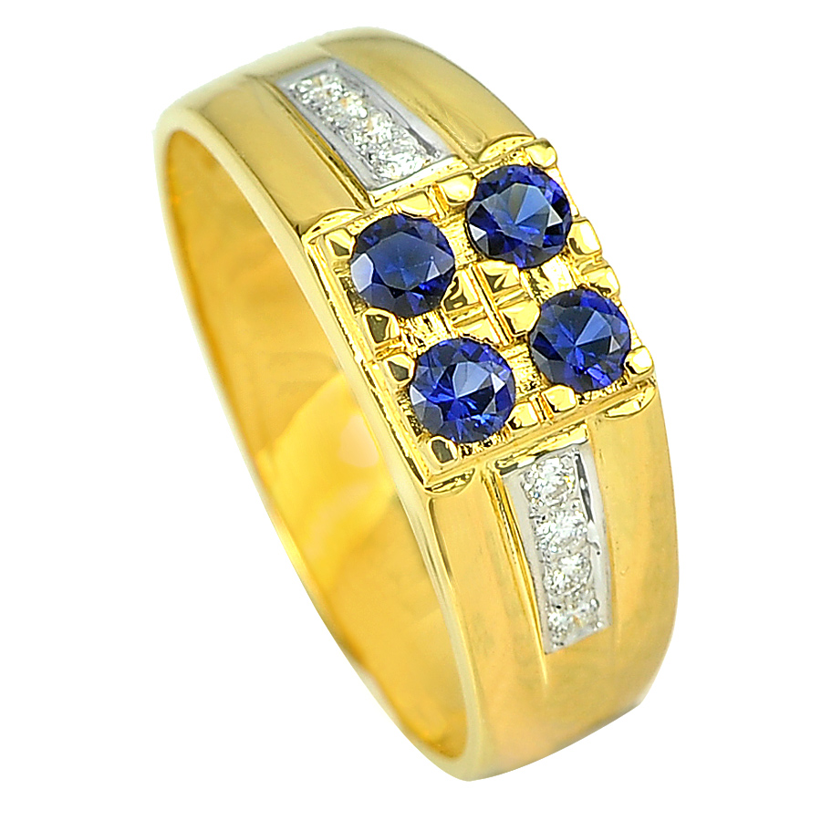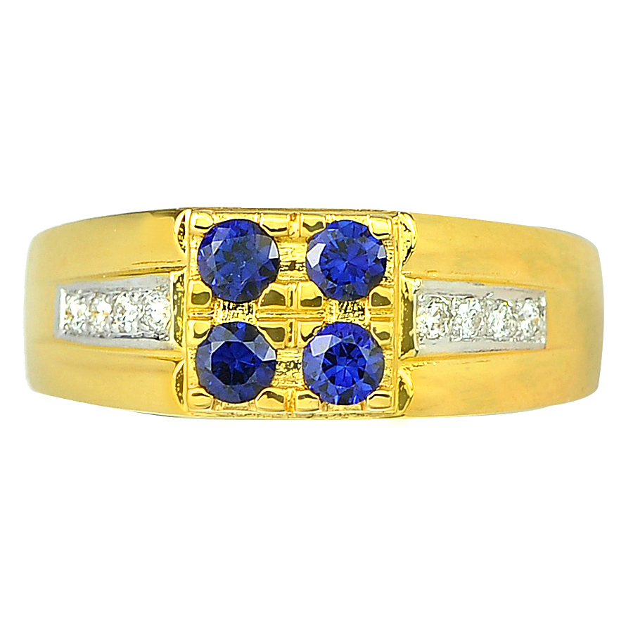 0.42 Ct. Natural Blue Sapphire with White Diamond 18K Solid Gold Ring Size 9