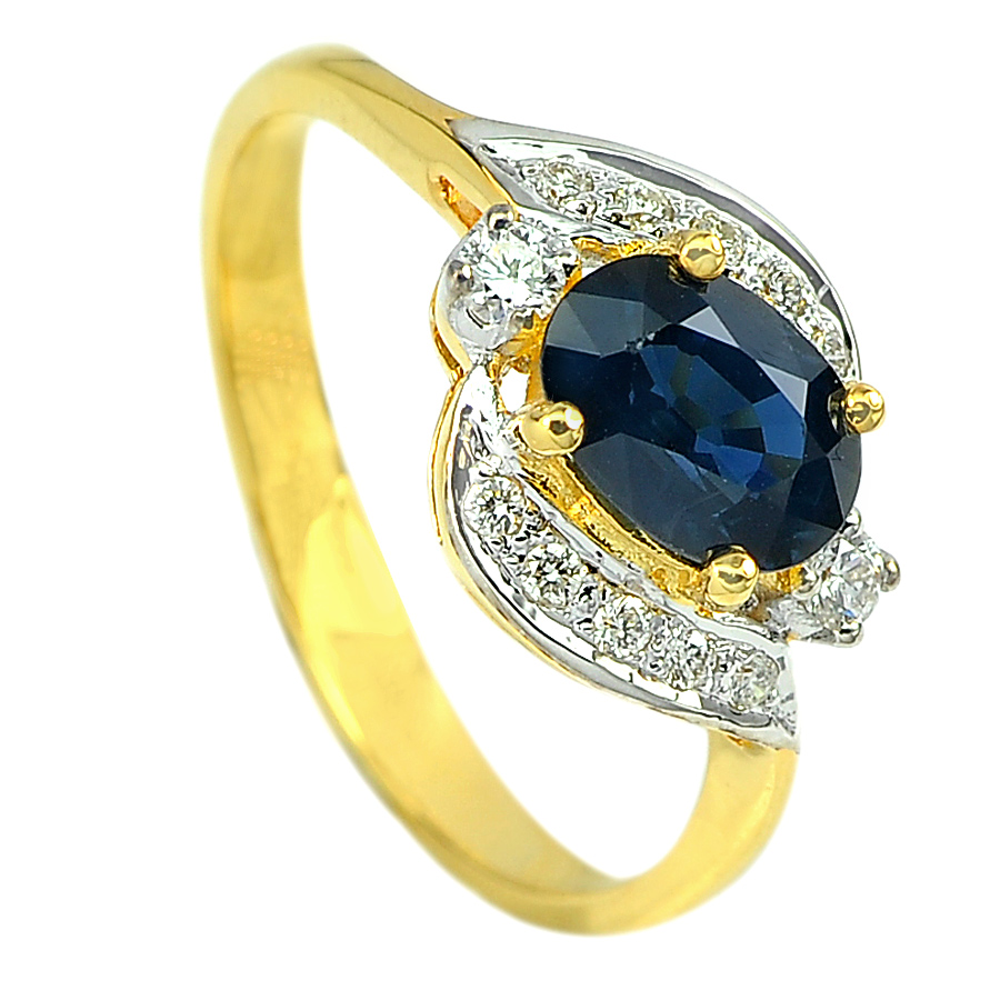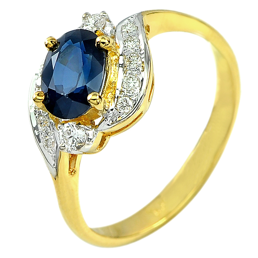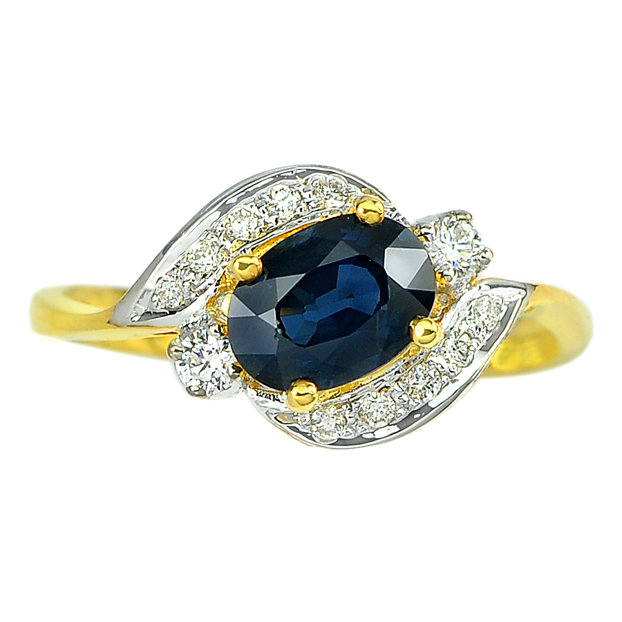 1.23 Ct. Natural Blue Sapphire with White Diamond 18K Solid Gold Ring Size 6.5