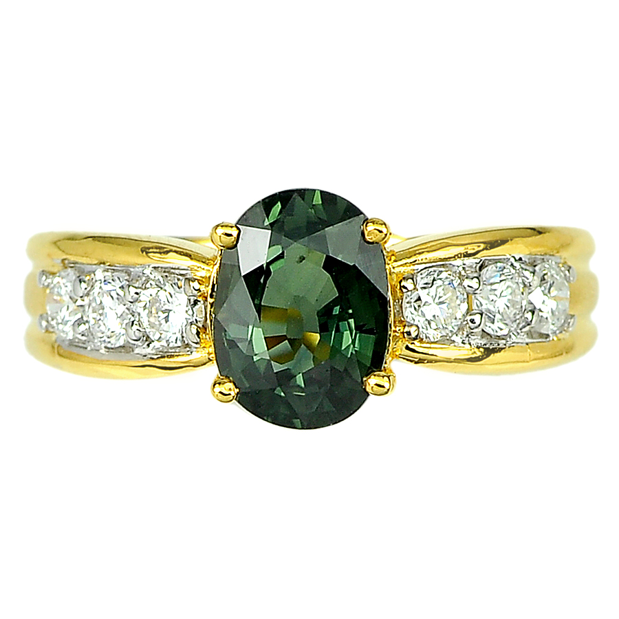 1.96 Ct. Natural Green Sapphire with Diamond 18K Solid Gold Ring Size 7