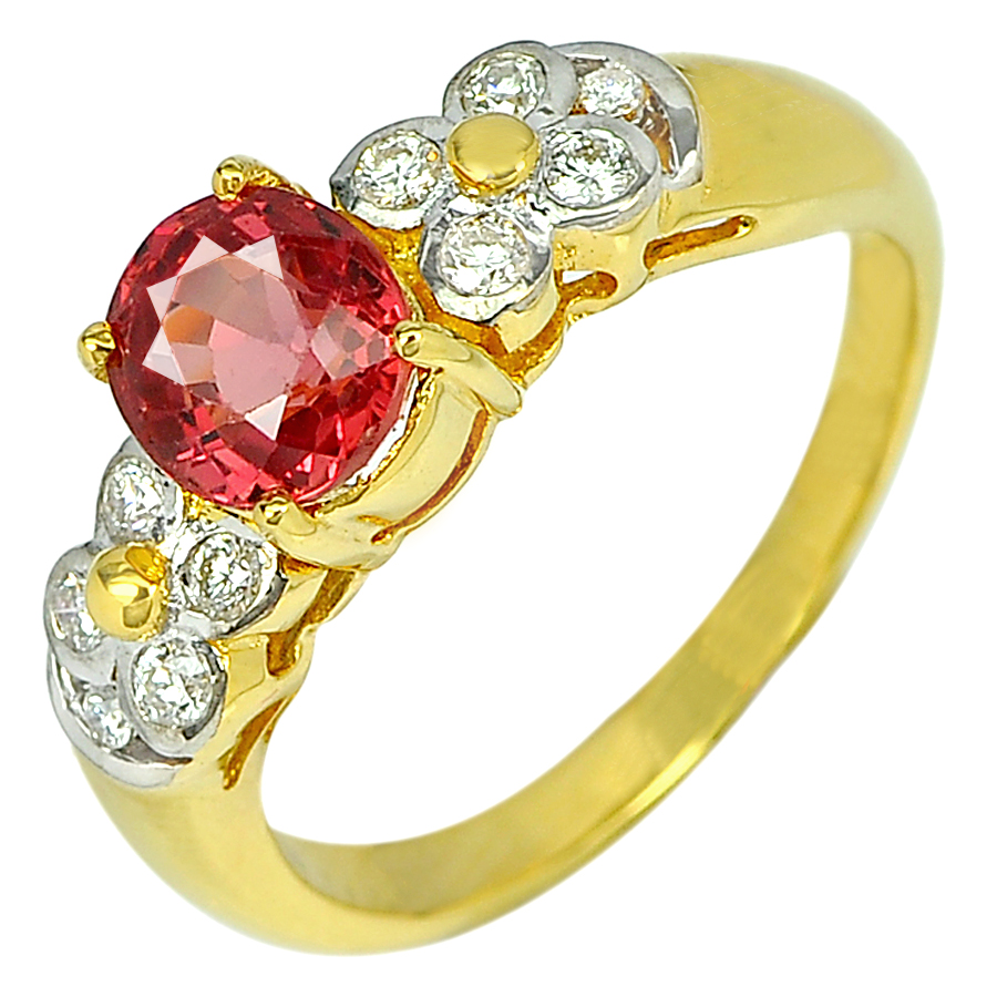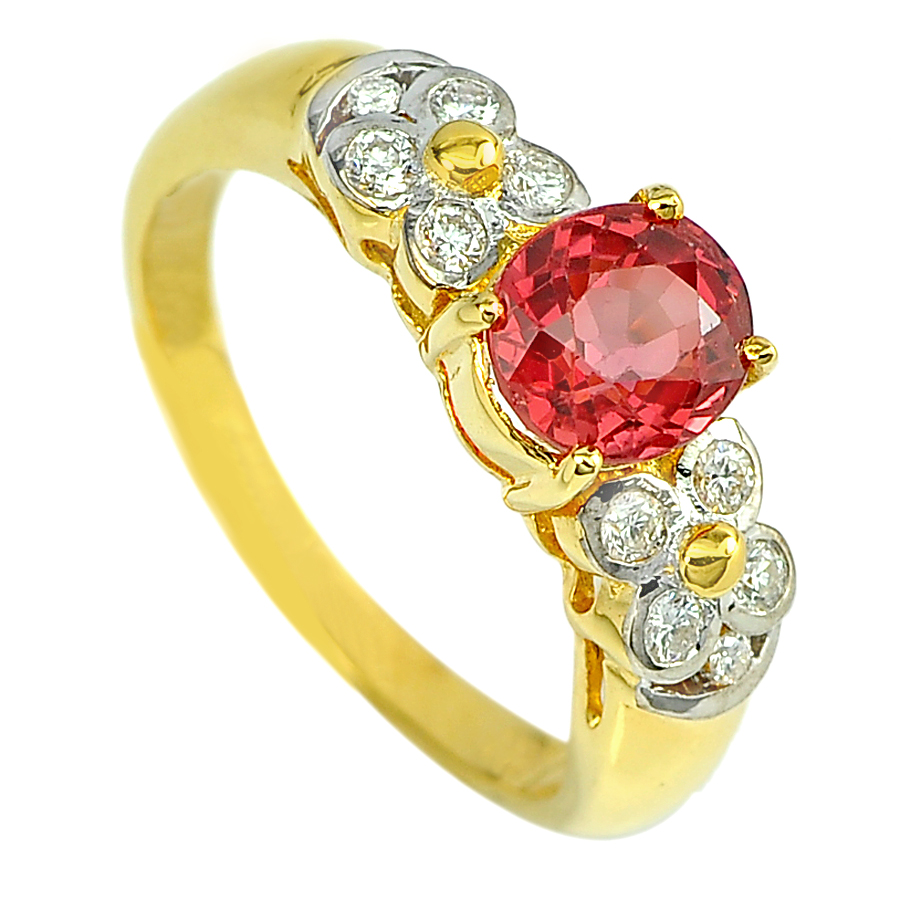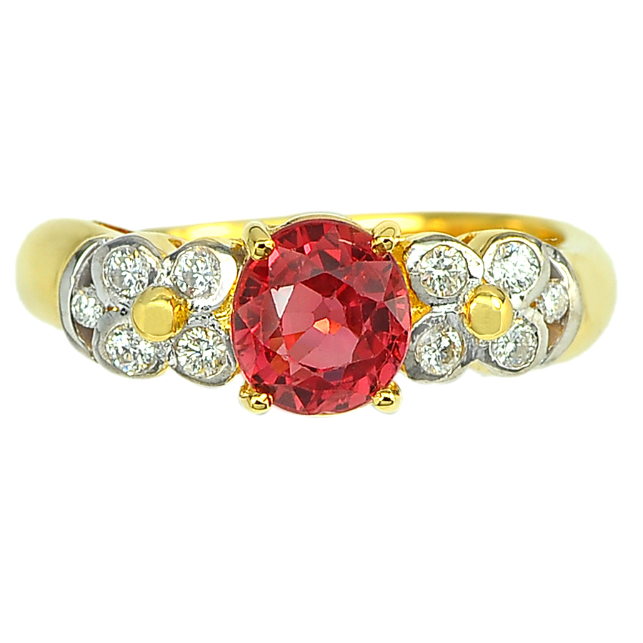 1.66 Ct. Natural Red Songea Sapphire with Diamond 18K Solid Gold Ring Size 6.5