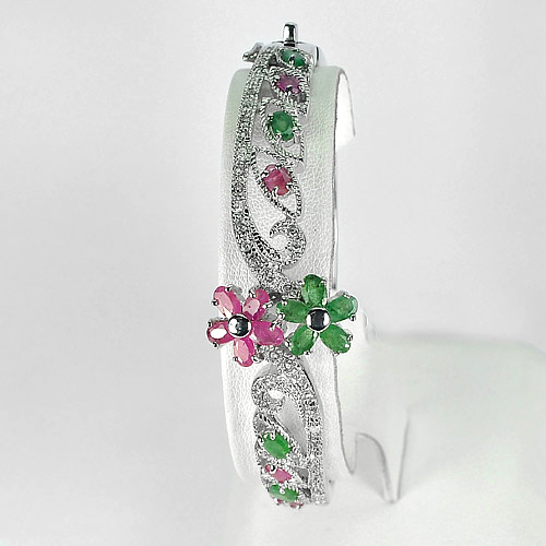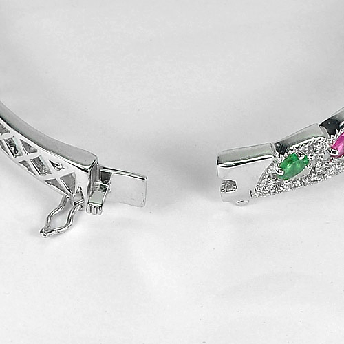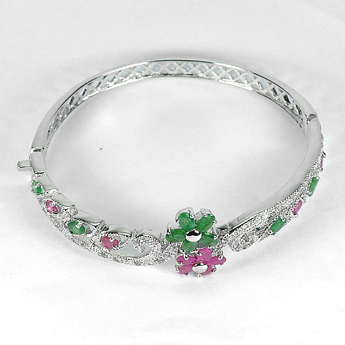 23.84 G. Good Natural Gemstones Emerald and Ruby Real 925 Sterling Silver Bangle