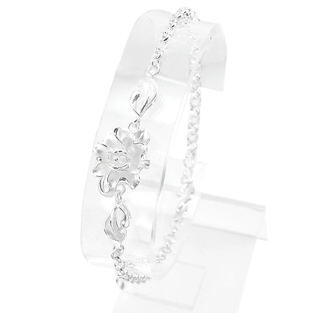 5.61 G. Beautiful Flower Real 990 Sterling Silver Jewelry Bracelet 7.5 Inch.
