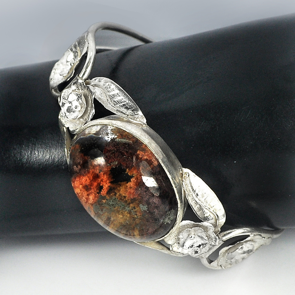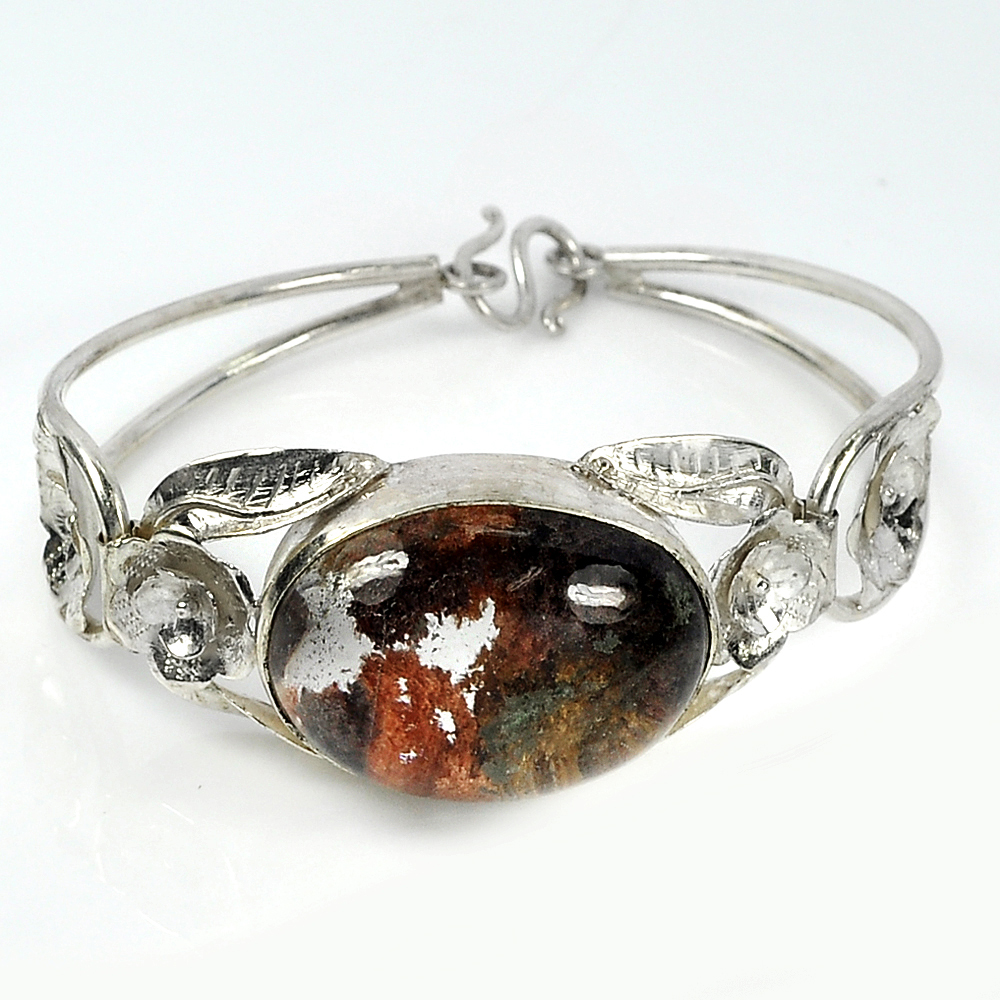 925 Silver Jewelry Bangle 20 G. Oval Cabochon 28x22 mm. Natural Gemstone Quartz