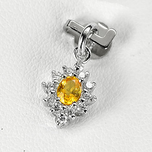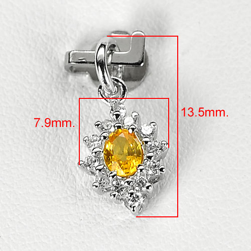 0.78 G.Gem Natural Yellow Sapphire 925 Sterling Silver White Gold Plated Pendant