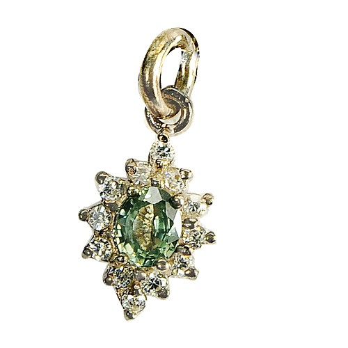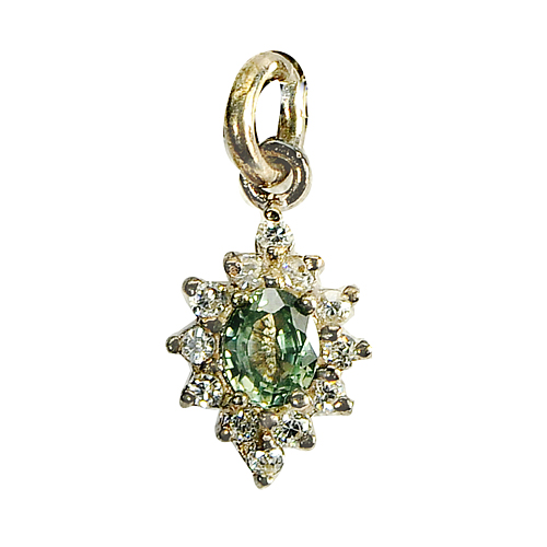 Center: Oval Natural Green Songea Sapphire Size 4.6 x 3.6 x 2.5 Mm. 1 Pcs.