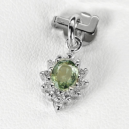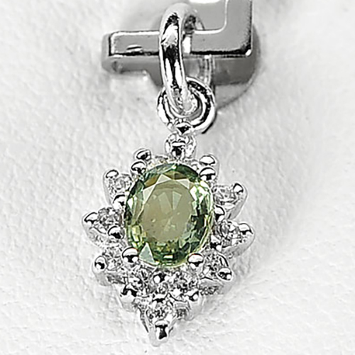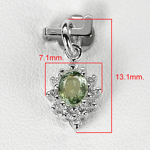Green Songea Sapphire Real 925 Sterling Silver Pendant 0.77 G. Natural Gem