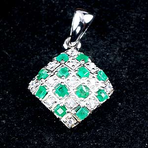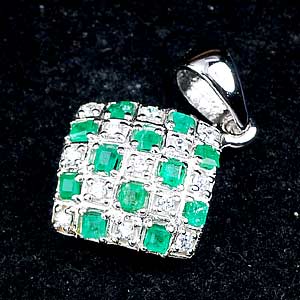 3.20 G. Square Green Natural Emerald 925 Sterling Silver Pendant