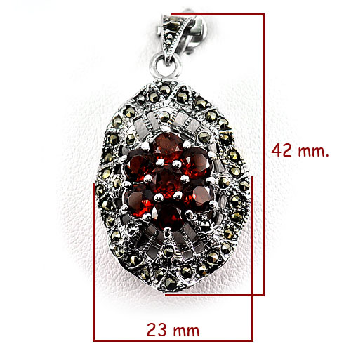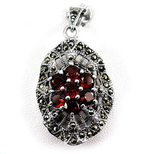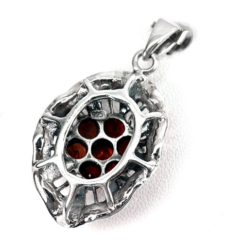 8.83 G. Natural Orangish Red Rhodolite Garnet Real 925 Sterling Silver Pendant