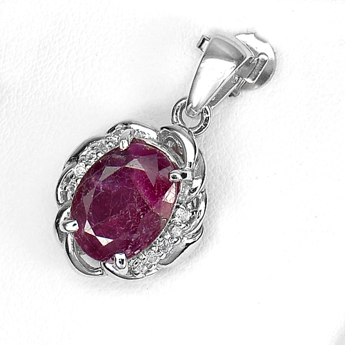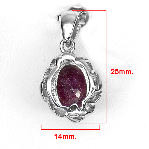 3.92 G. Natural Purplish Red Ruby Real 925 Sterling Silver Jewelry Pendant
