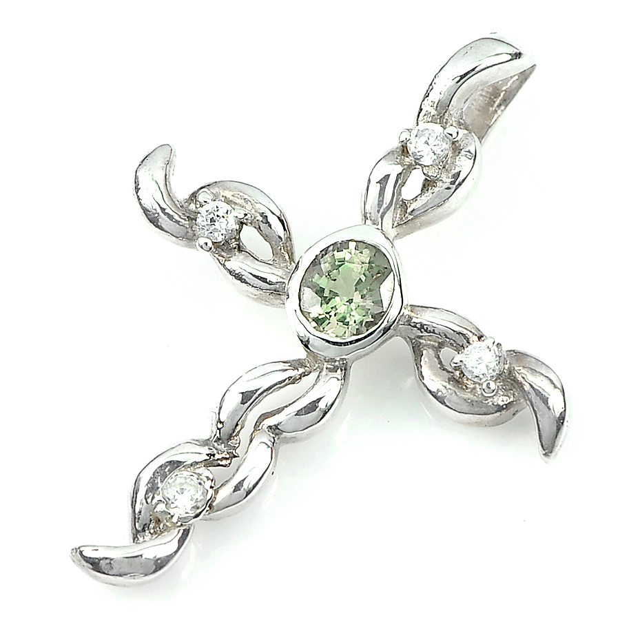 1.84 G. Natural Green Songea Sapphire Real 925 Sterling Silver Jewelry Pendant