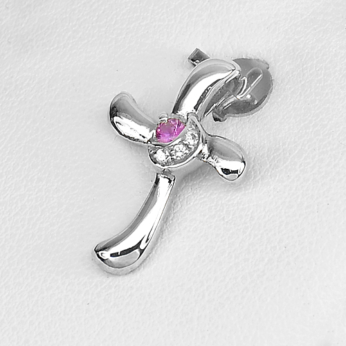 1.17 G. Natural Round Pink Songea Sapphire Real 925 Sterling Silver Fine Pendant