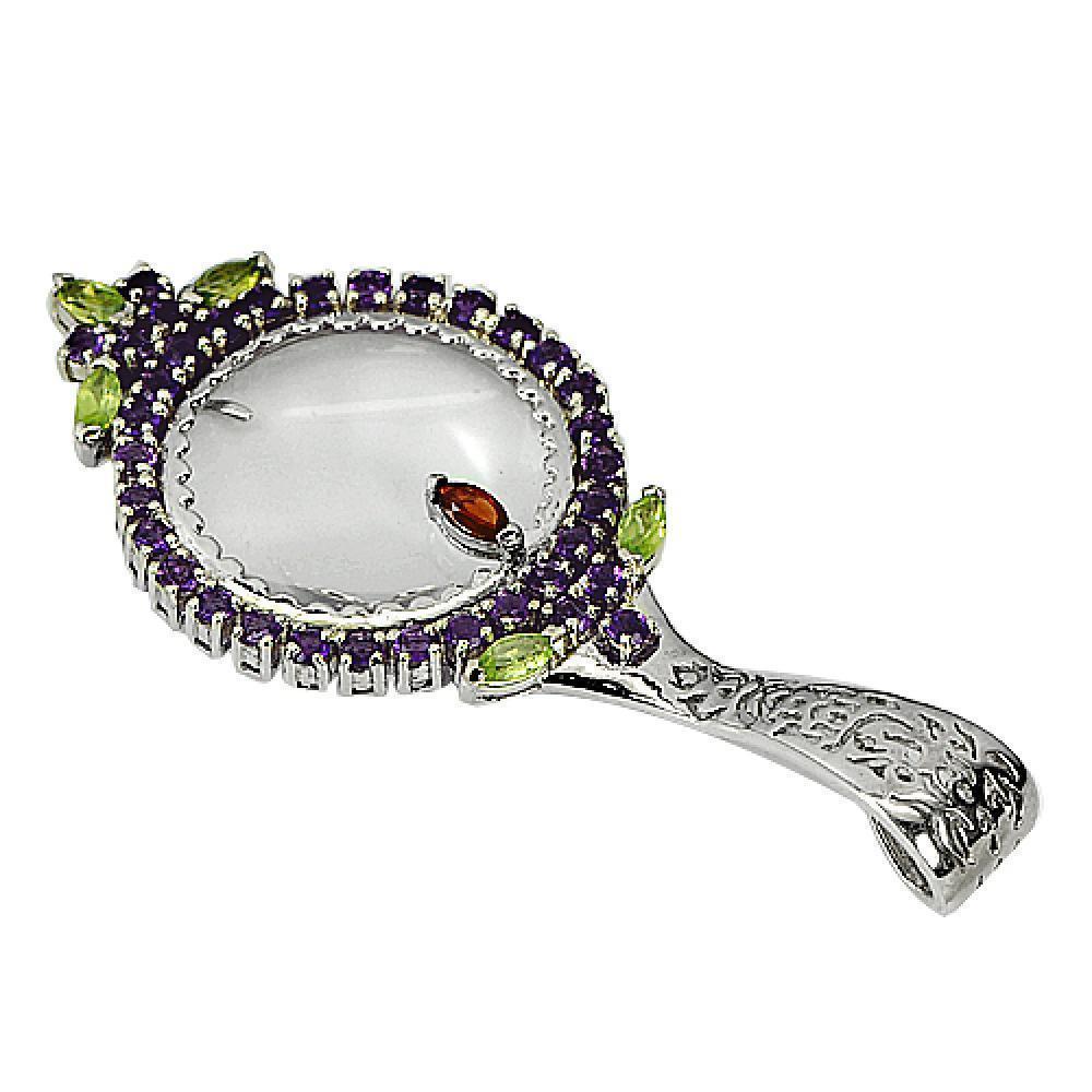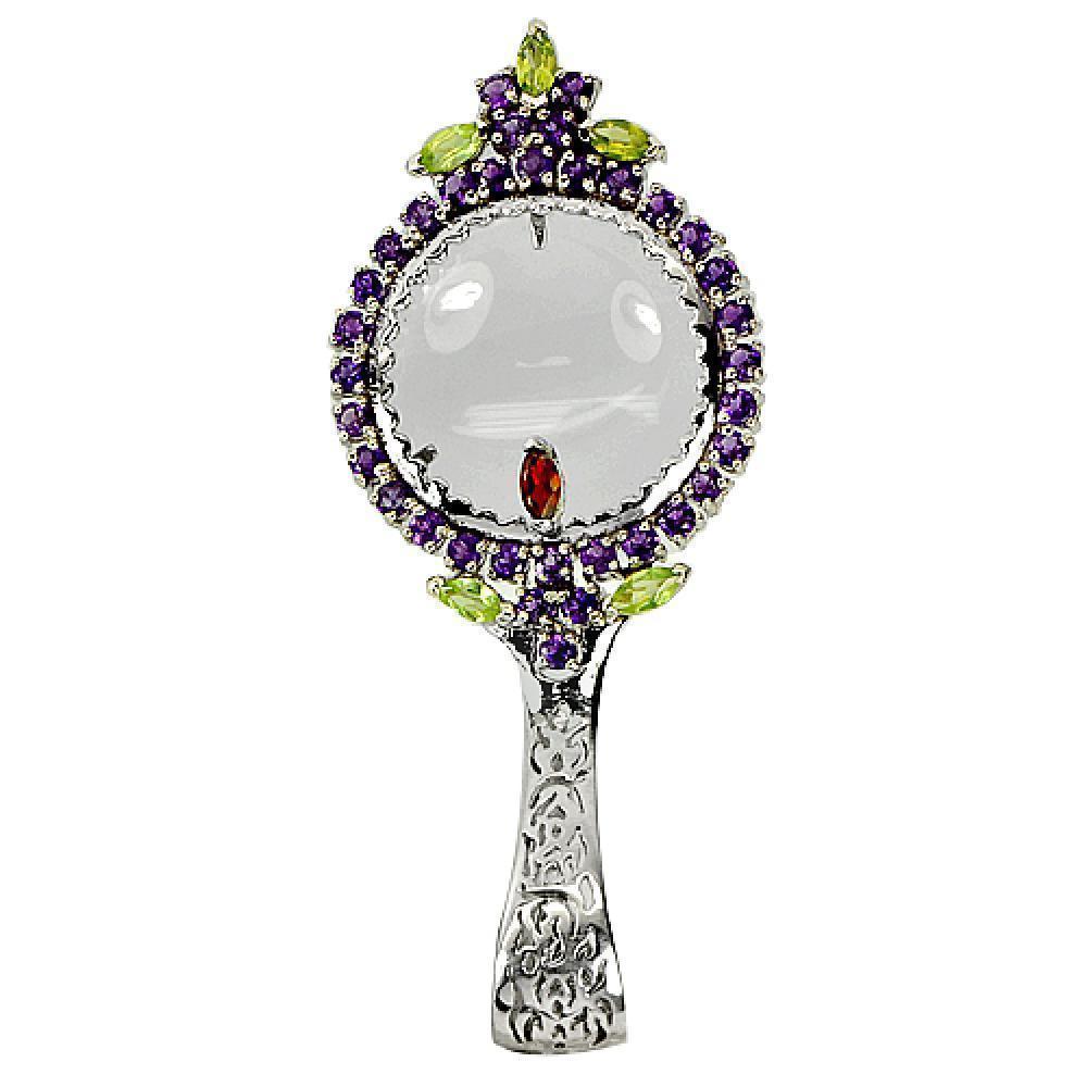 Charming Amethyst and Peridot Gems Magnifying Glass Sterling 925 Silver Jewelry
