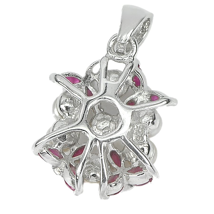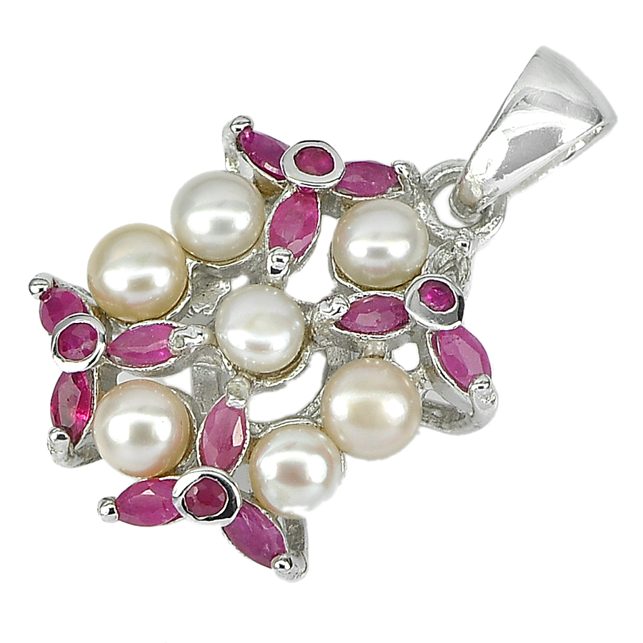 5.17 G. Natural Pearl And Ruby Real 925 Sterling Silver Jewelry Pendant
