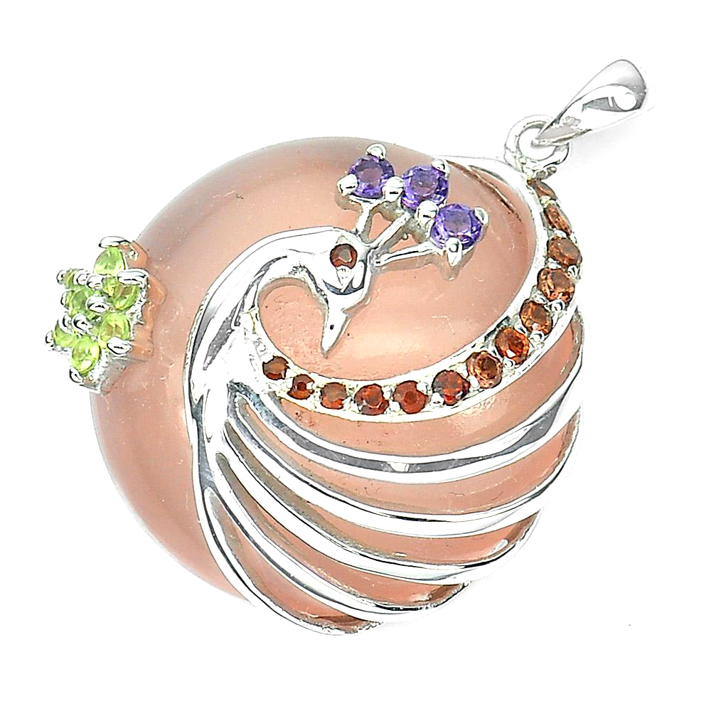 925 Sterling Silver Pendant 17.90 G. Natural Gem Quartz Amethyst Peridot Garnet