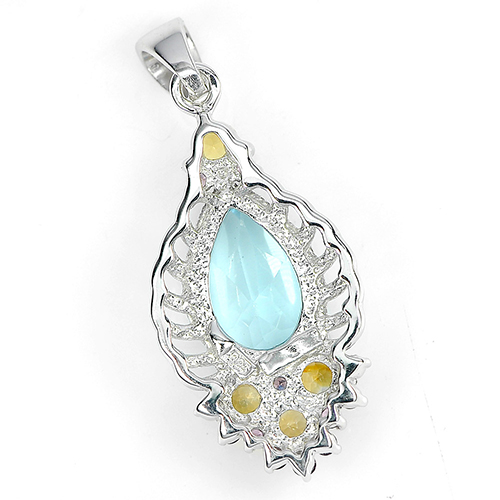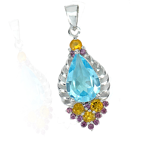 Blue Topaz Real 925 Sterling Silver Jewelry Pendant 3.09 G. Pear Shape Natural