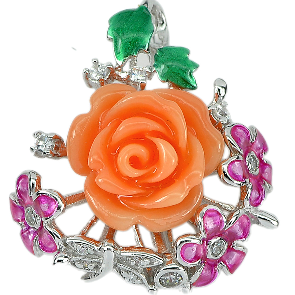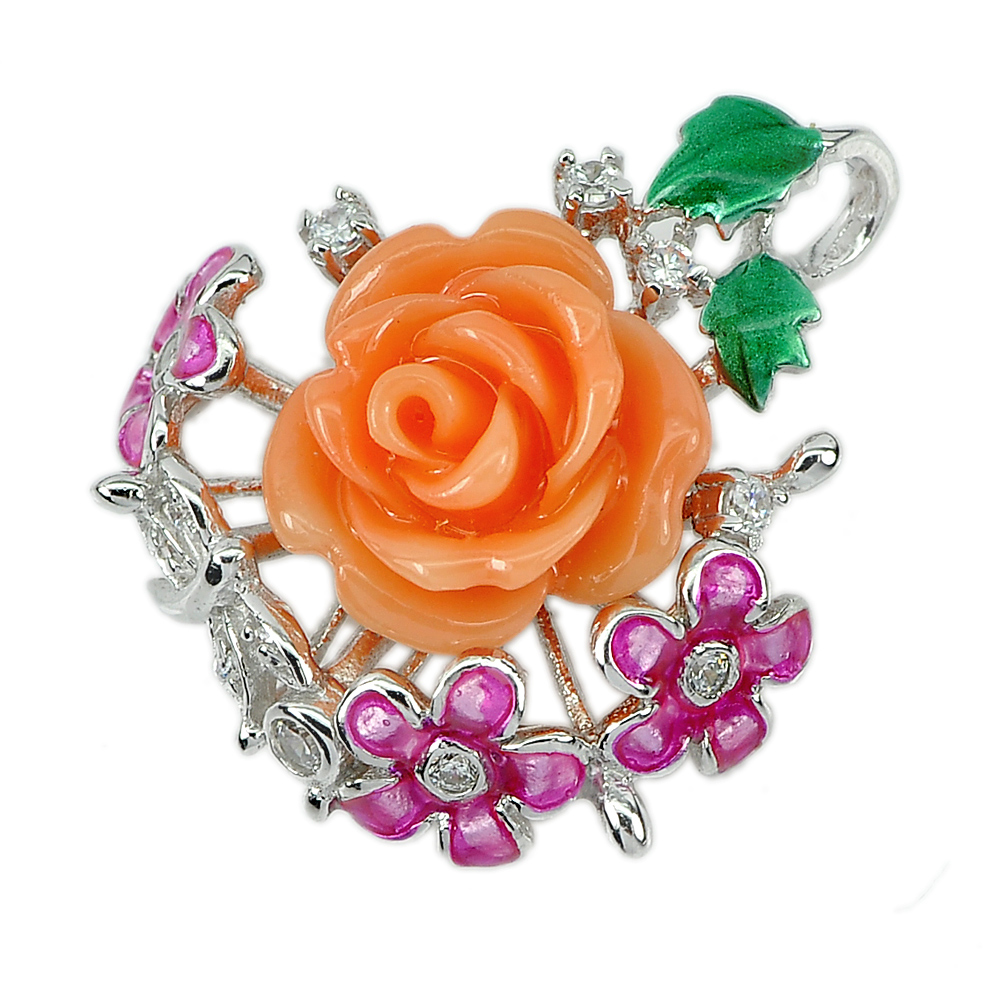 Flower Resin and Enamel Real 925 Sterling Silver Pendent 5.26 G. Thailand