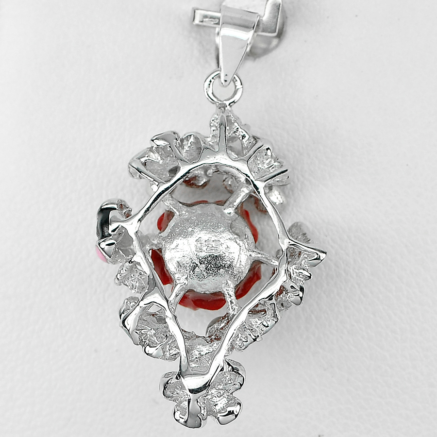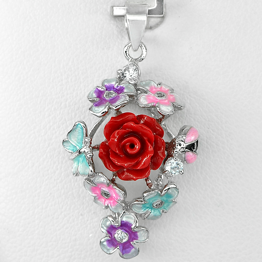 Beautiful Red Flower Resin and Enamel 3.45 G. Real 925 Sterling Silver Pendant