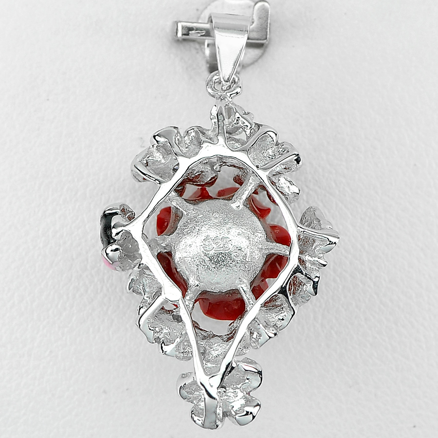 3.24 G. Real 925 Sterling Silver Pendant Beautiful Red Flower Resin and Enamel