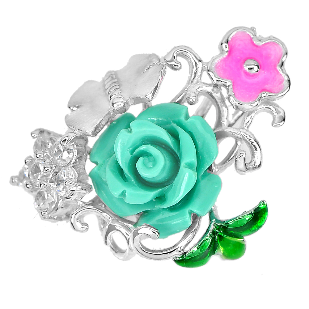 3.83 G. Beautiful Green Flower Resin Desing Real 925 Sterling Silver Pendant