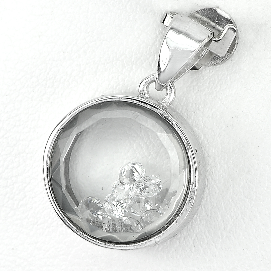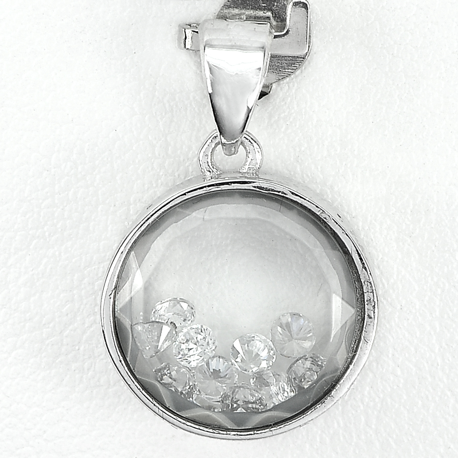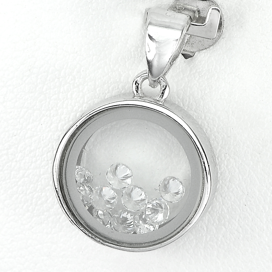 Delightful 3.08 G. Real 925 Sterling Silver Jewelry Pendant with Round White CZ