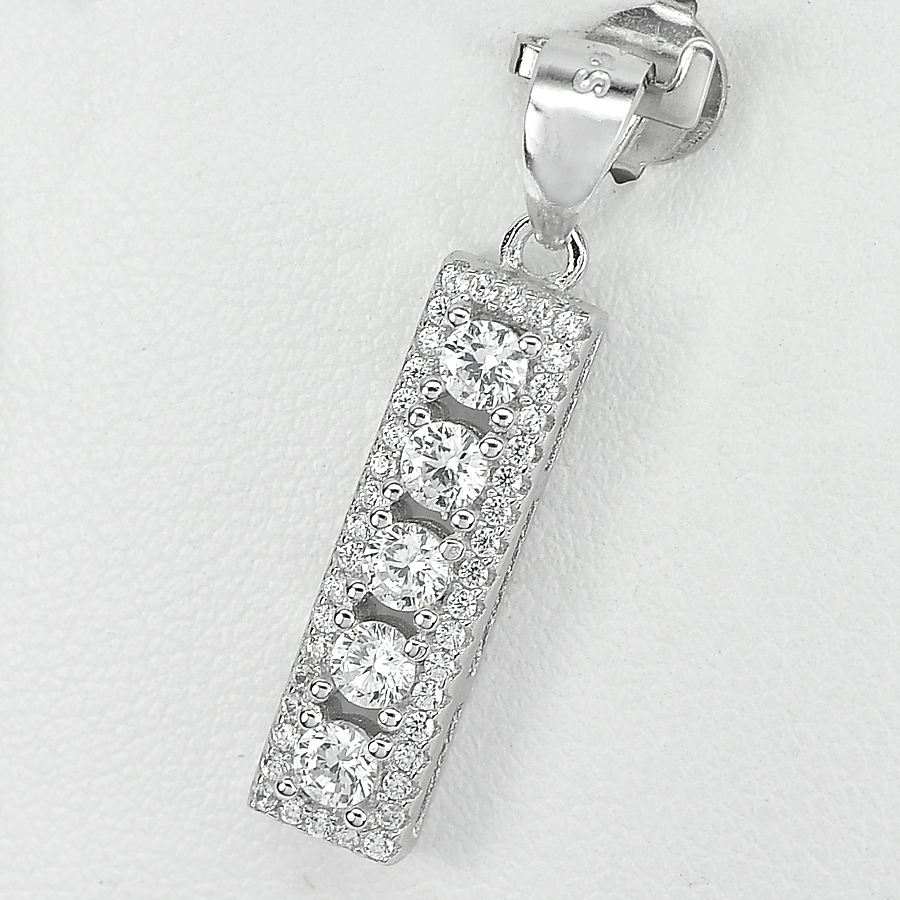 2.21 G. Real 925 Sterling Silver Jewelry Pendant with Round White CZ Good