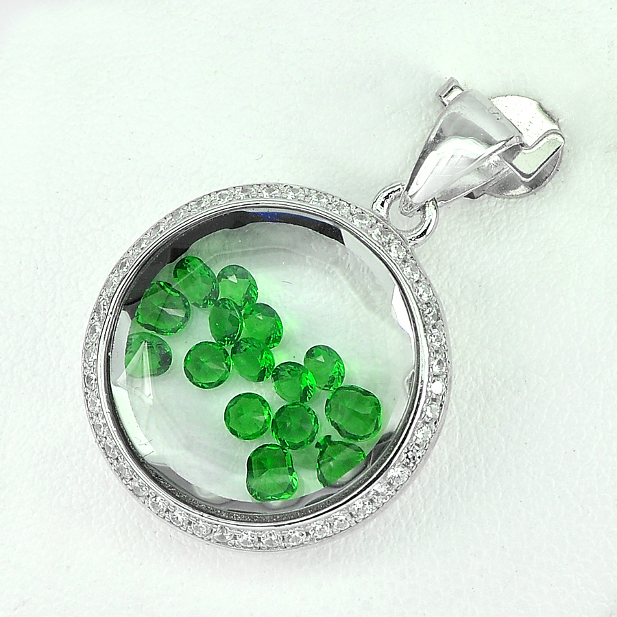 5.04 G. Real 925 Sterling Silver Jewelry Pendant Good with Cz Green
