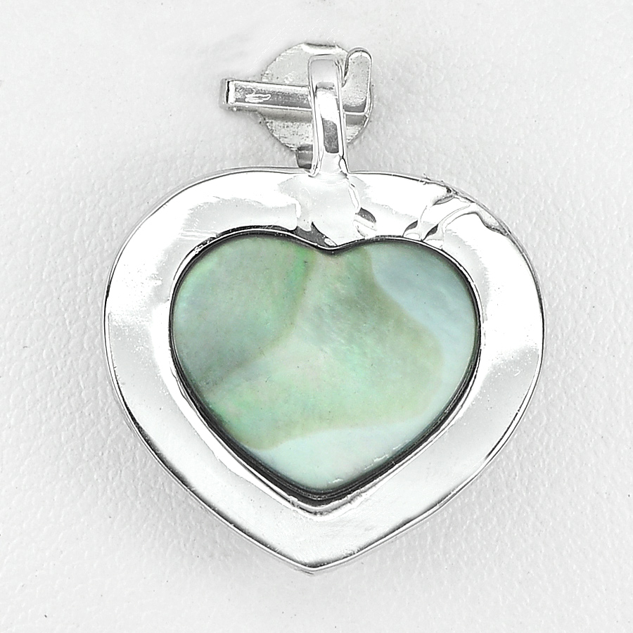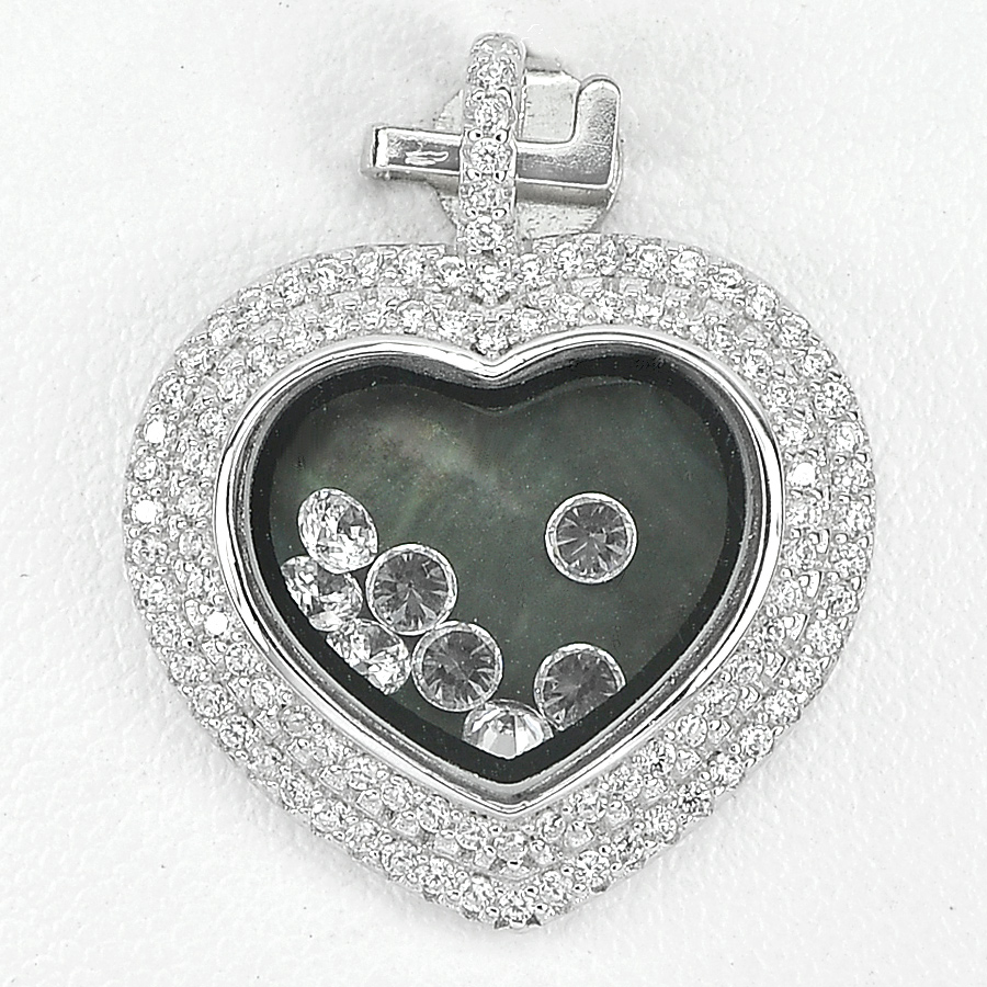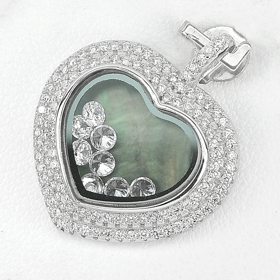 5.44 G. Real 925 Silver Jewelry Heart Pendant Mother Of Pearl with Cz Good