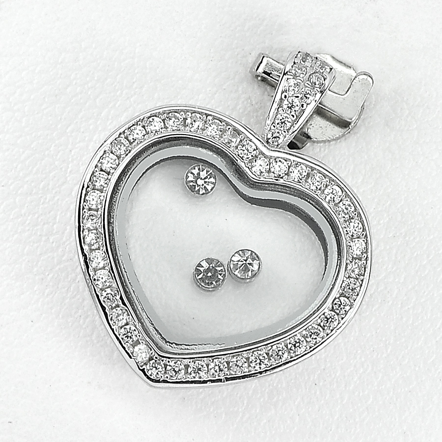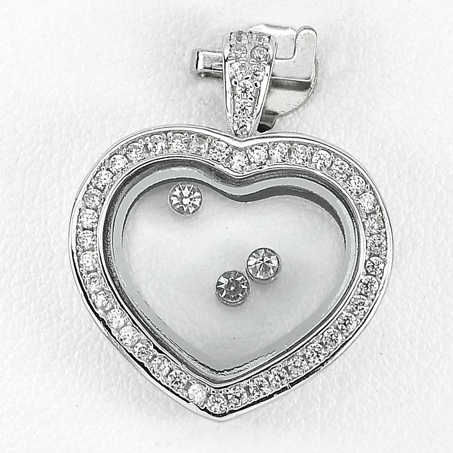4.41 G. Real 925 Sterling Silver Jewelry Heart Pendant Beautiful with Cz White