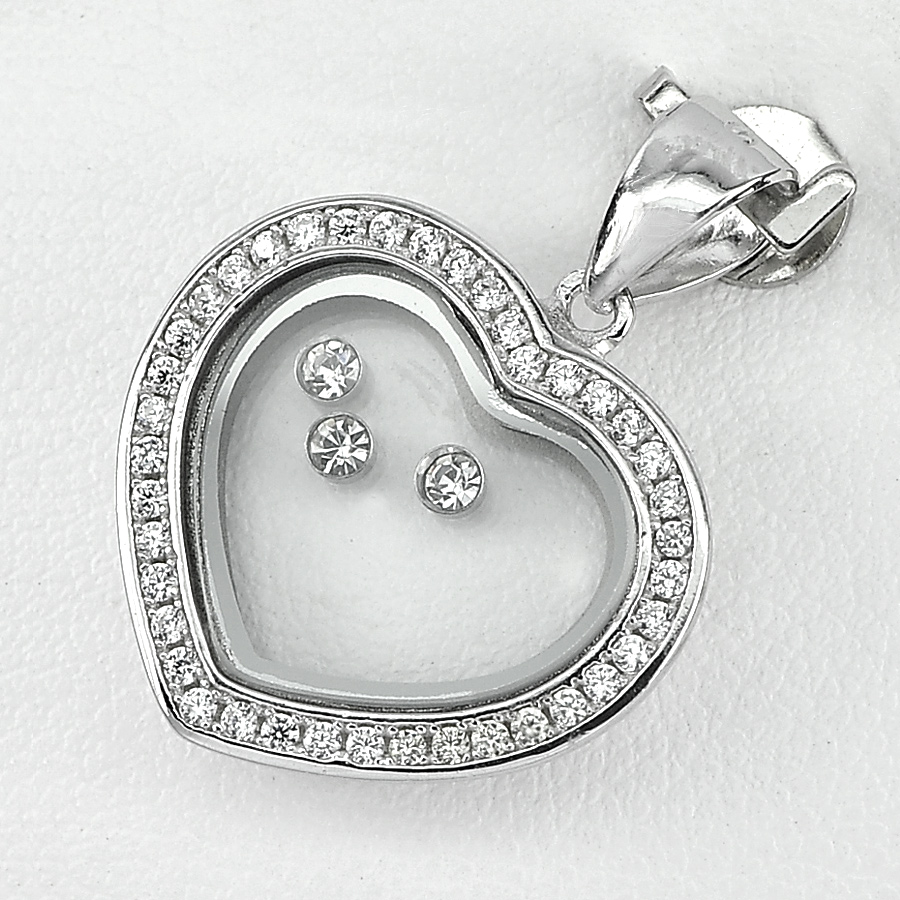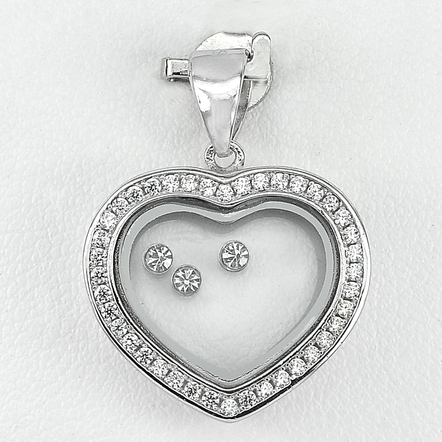 4.21 G. Real 925 Sterling Silver Jewelry Heart Pendant Stunning with Cz White
