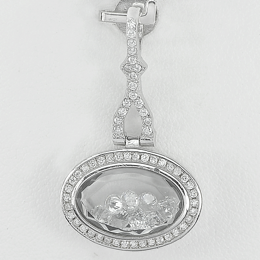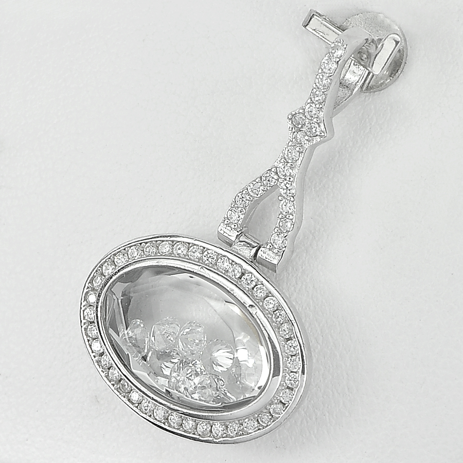 4.13 G. Real 925 Sterling Silver Jewelry Pendant with Round White CZ