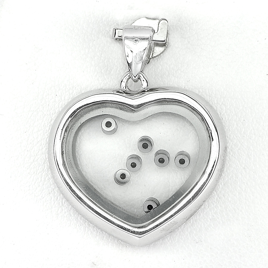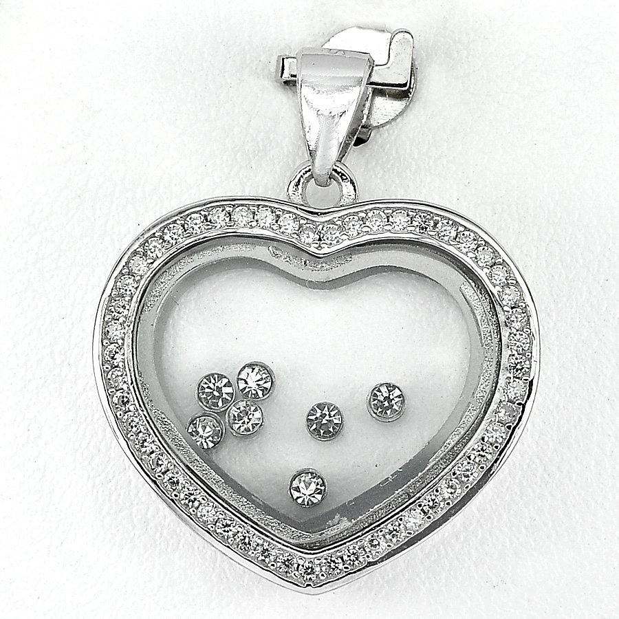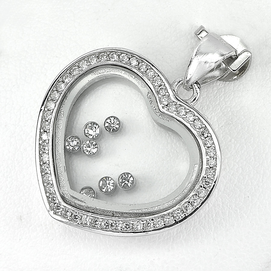 6.66 G. Round Cz White Real 925 Sterling Silver Jewelry Heart Pendant Beautiful