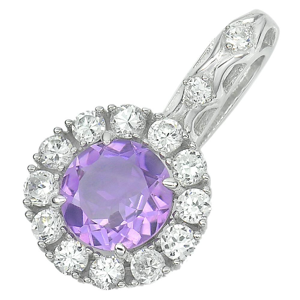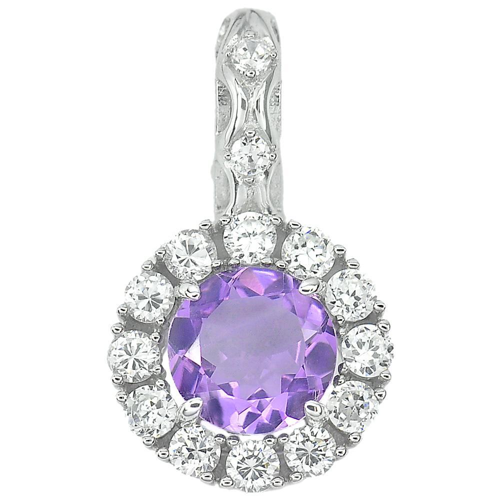 2.49 G. Natural Gem Purple Amethyst Real 925 Sterling Silver Jewelry Pendant