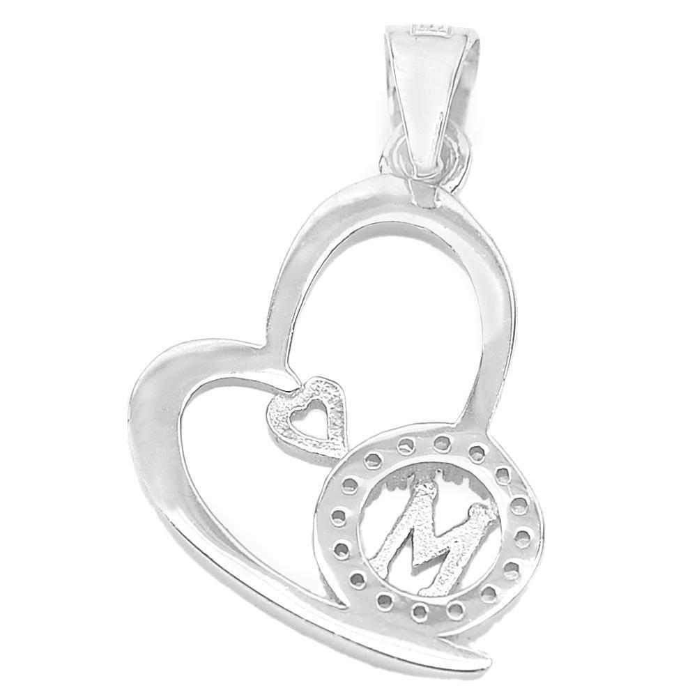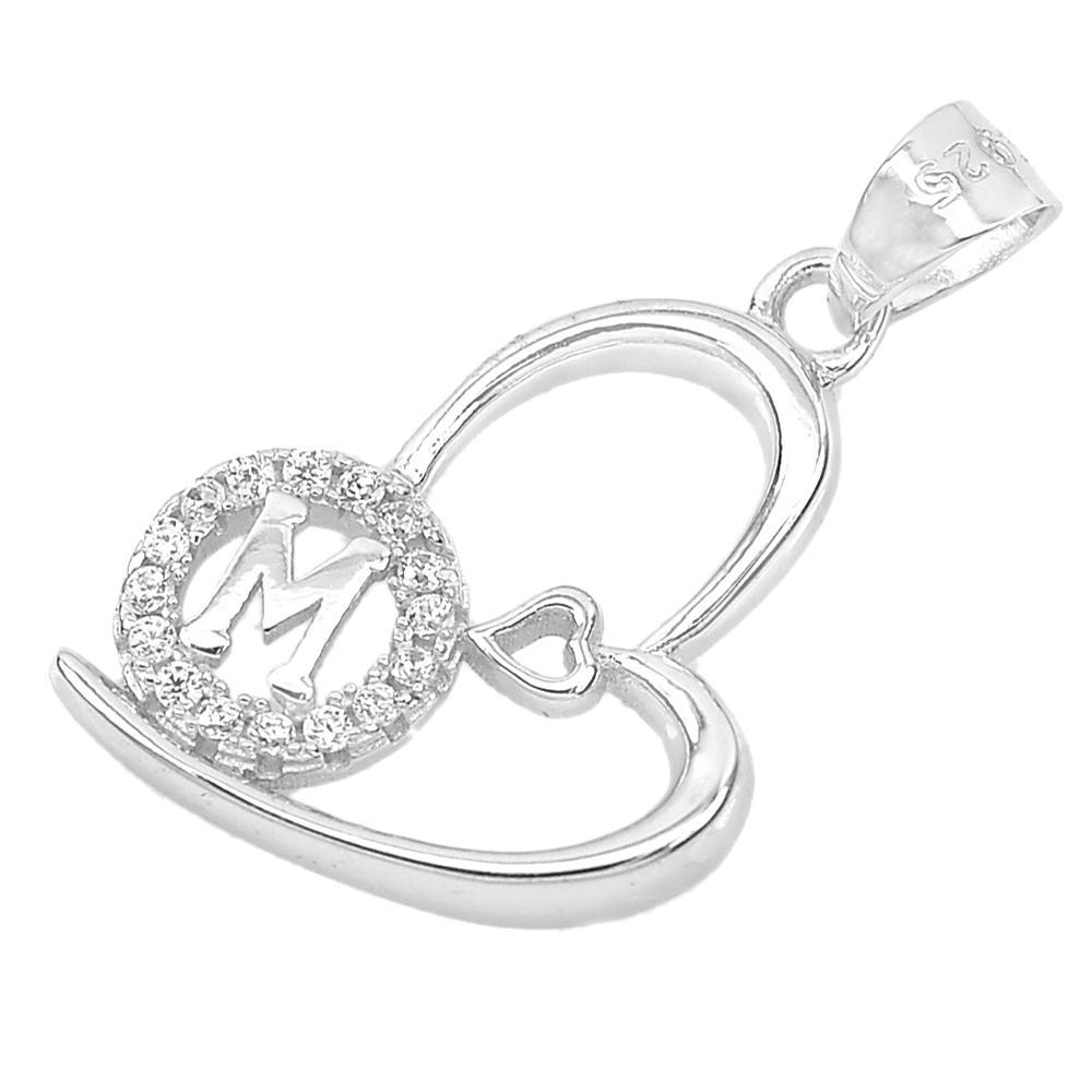 1.20 G. Good Letter M Design With CZ Real 925 Sterling Silver Jewelry Pendant