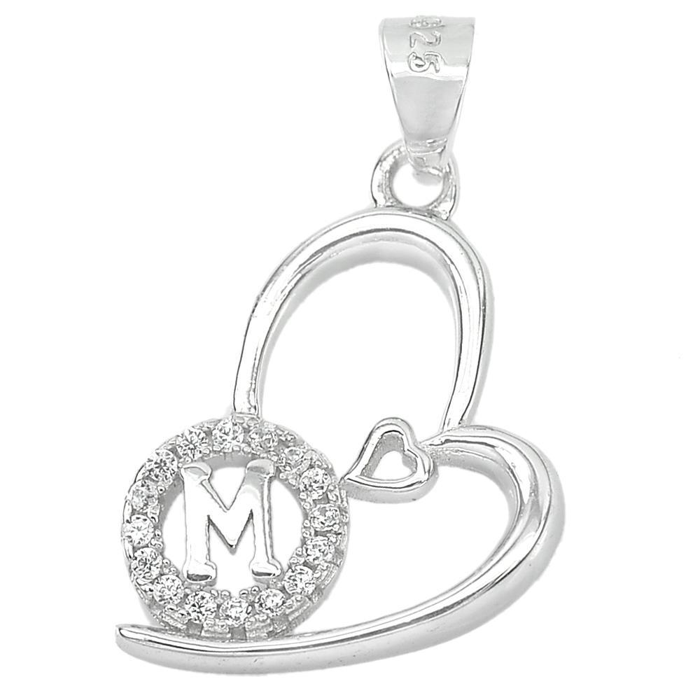 1.19 G. Good Letter M Design With CZ Real 925 Sterling Silver Jewelry Pendant