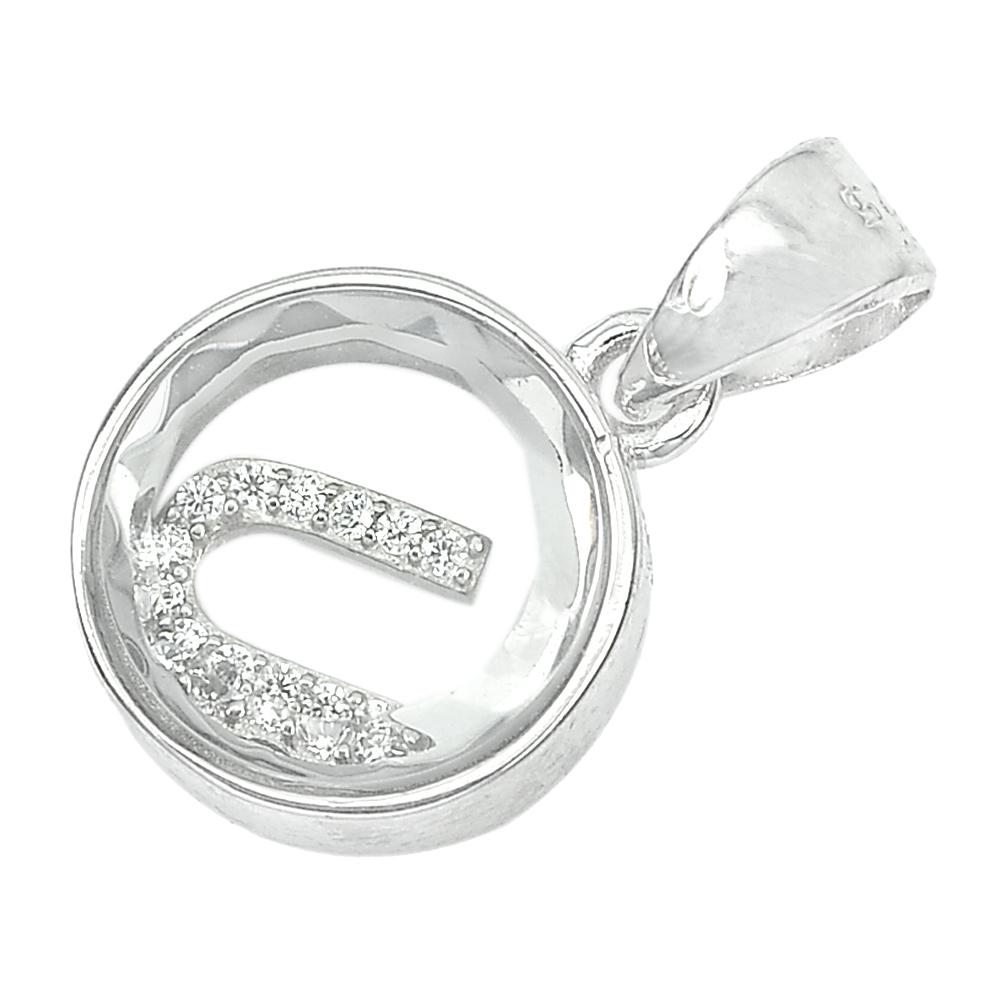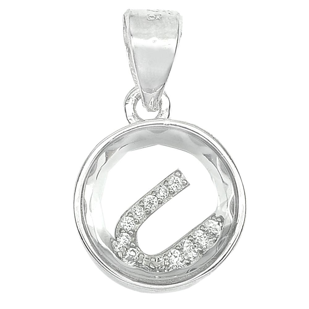 2.33 G. Letter U with White CZ Real 925 Sterling Silver Fine Jewelry Pendant