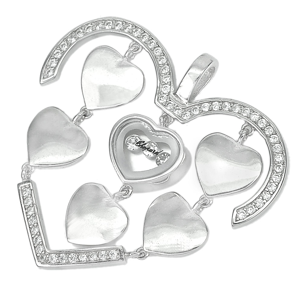 7.02 G. Heart Design Real 925 Sterling Silver Fine Jewelry Pendant with Cz