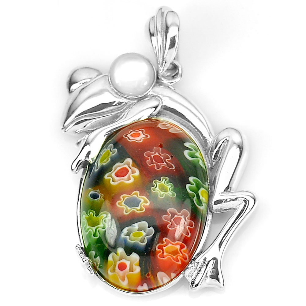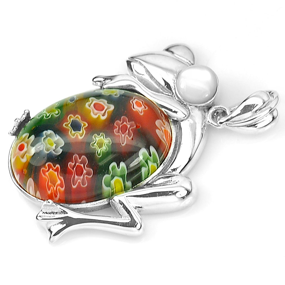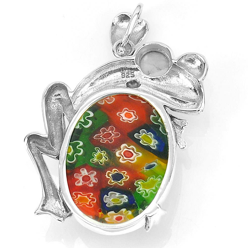 10.51 G. Murano Lampwork Art Glass Beaded Frog Pendant Real 925 Sterling Silver