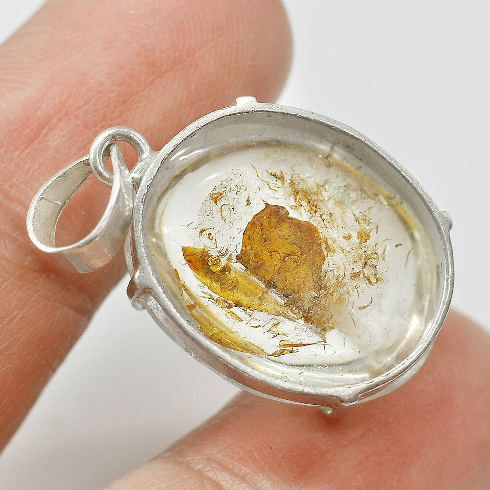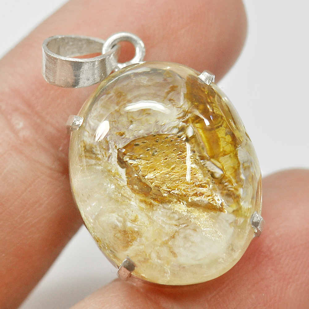 925 Sterling Silver Pendant 67.02 G. Quartz Oval Cabochon Natural Gemstone