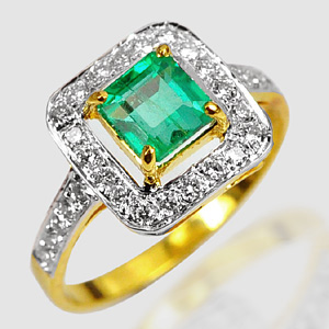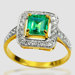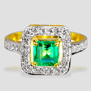 1.22 Ct. Green Emerald & White Diamond 18K Solid Gold Ring