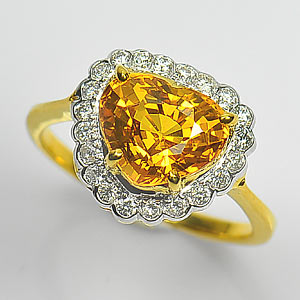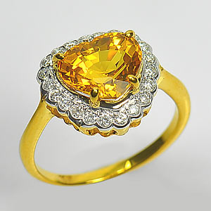 3.88 Ct. Natural Yellow Sapphire & White Diamond 18K Solid Gold Ring Size 7