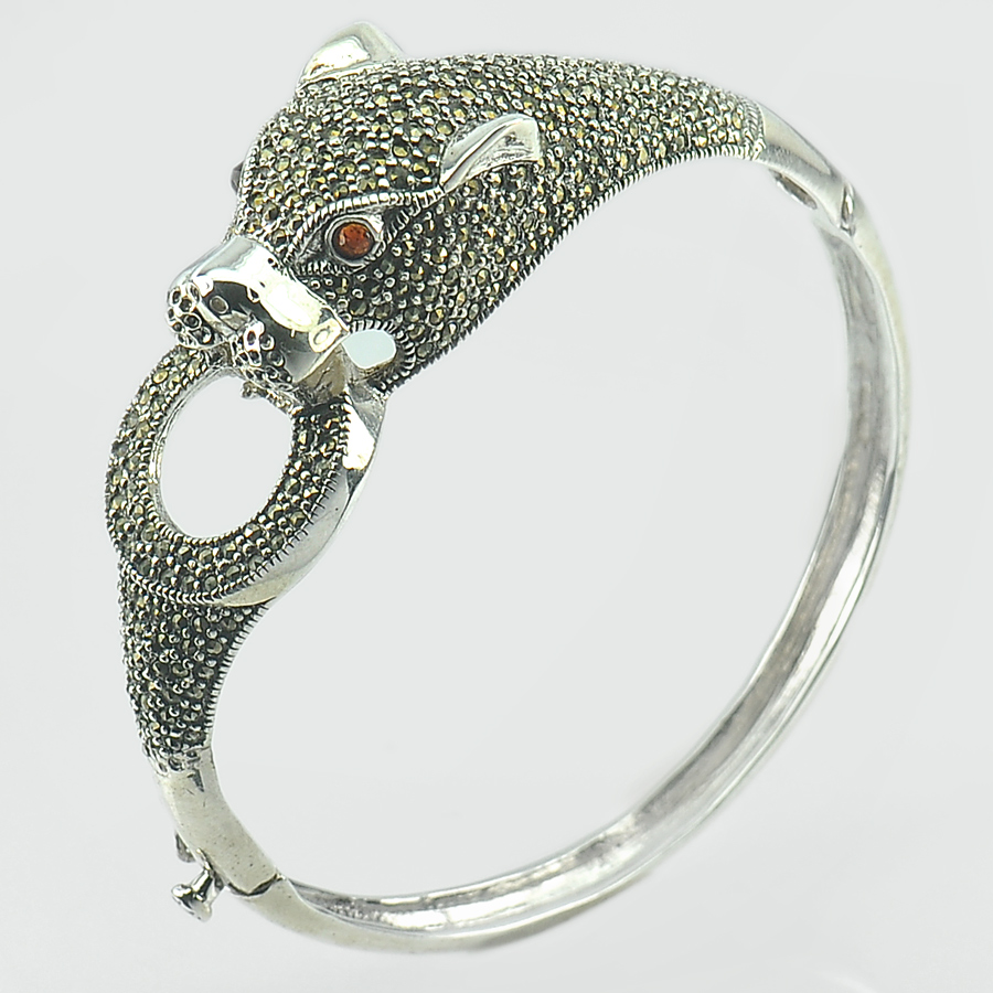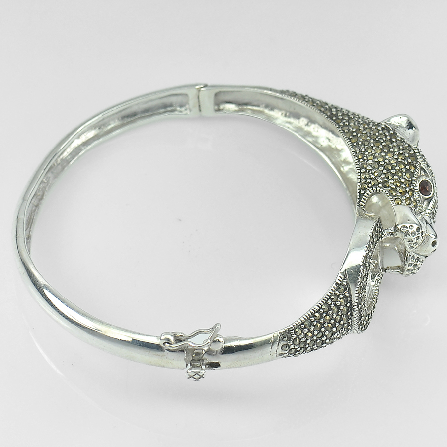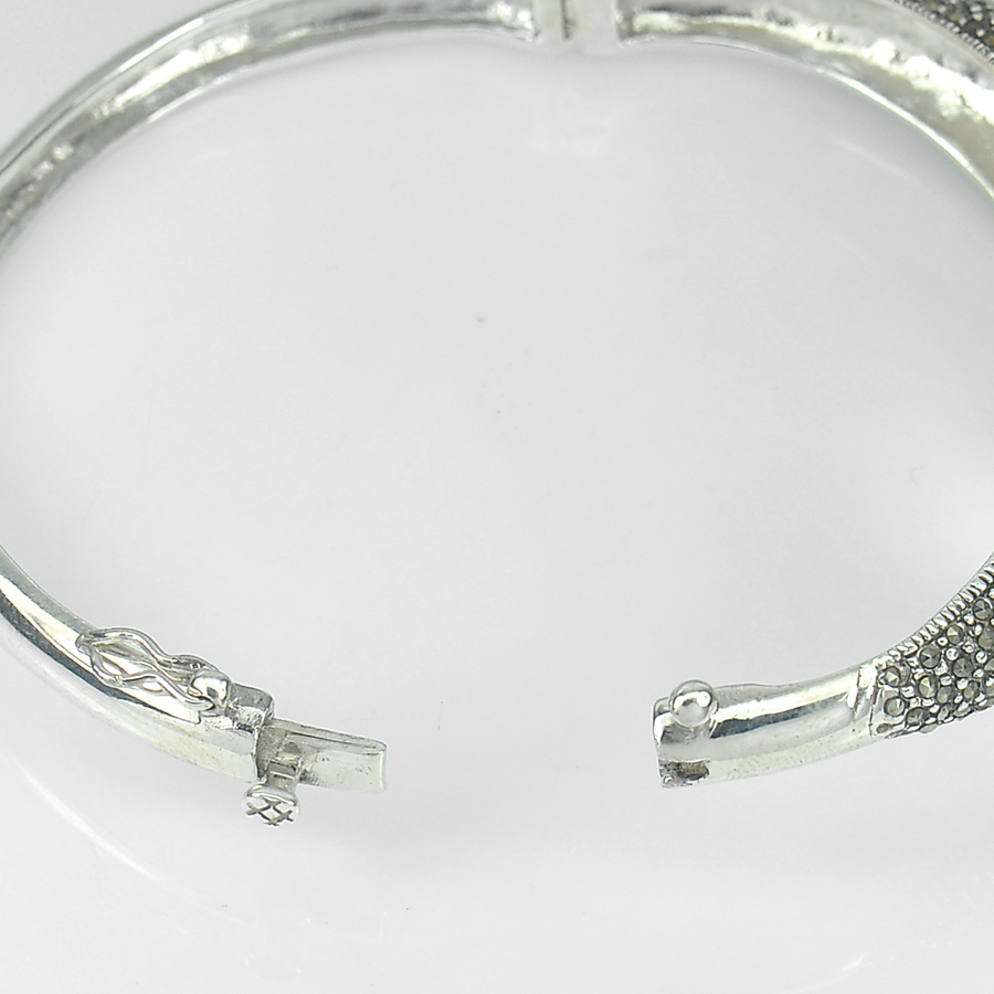 30.27 G. Black Marcasite 925 Silver Jewelry Bangle