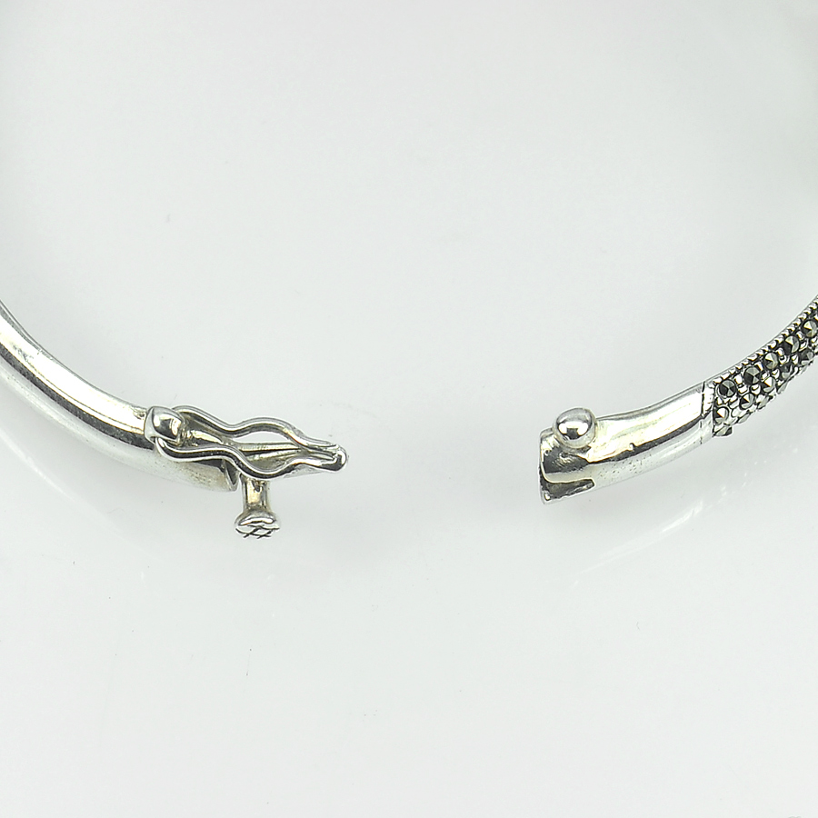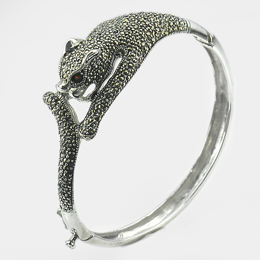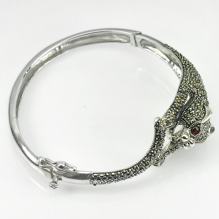 123.95 G. Design Tiger Black Marcasite Silver Jewelry Bangle