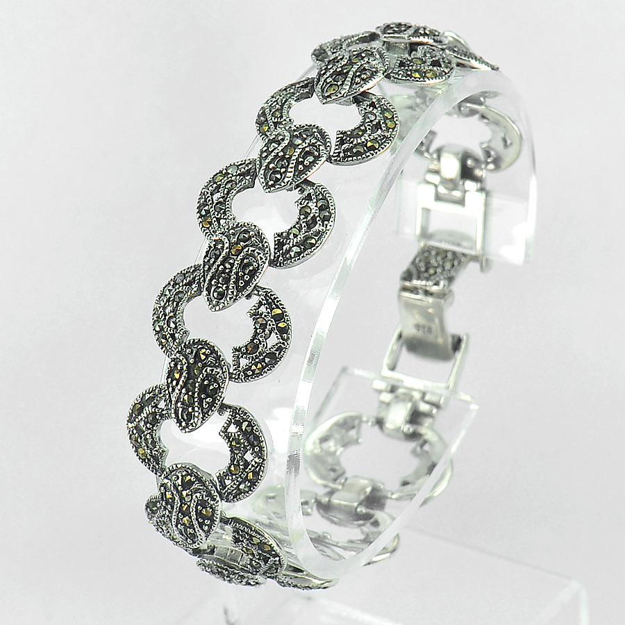 27.65 G. Wonderful Round Black Marcasite 925 Silver Jewelry Bracelet 7.5 Inch