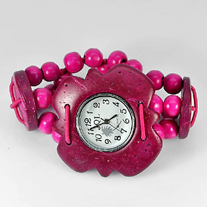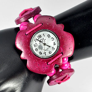 Beauty Wrist Watch Pink Color Coconut Shell Stretch Bracelet