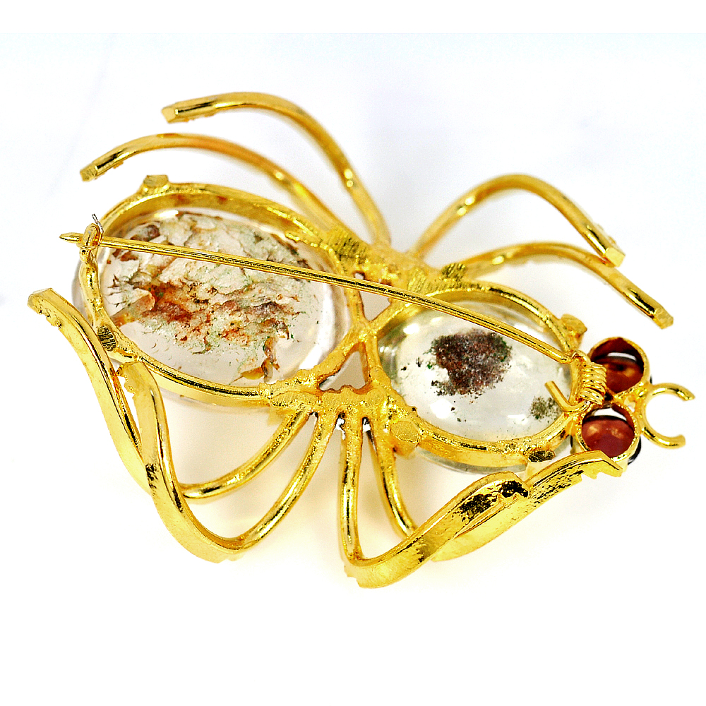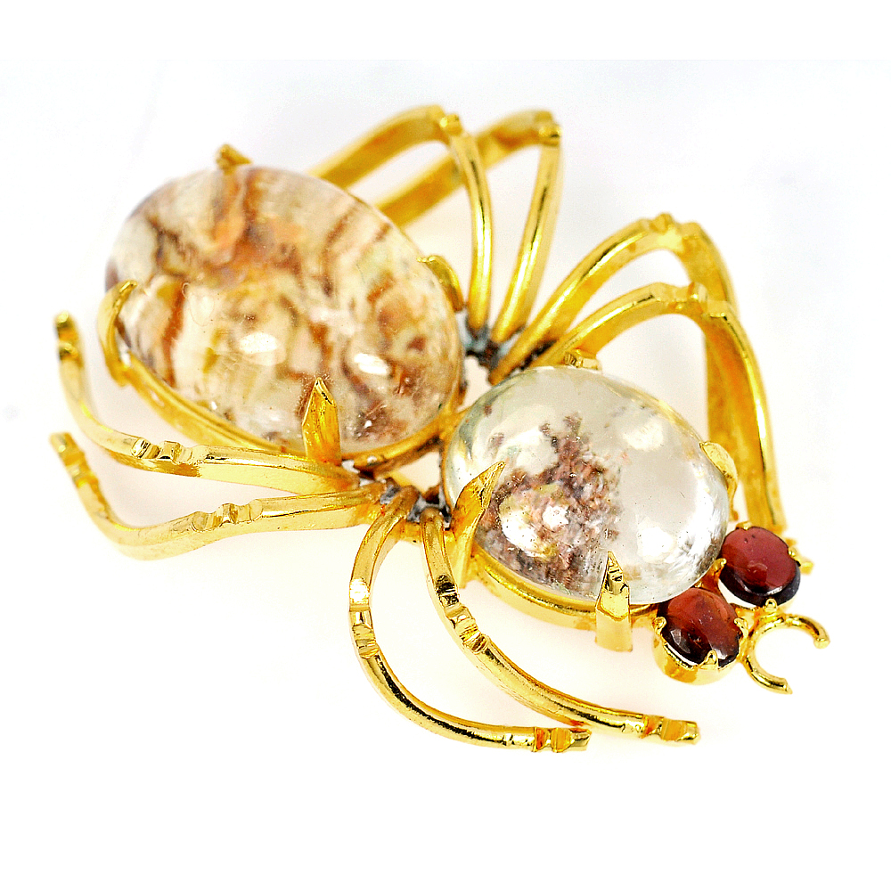 White Quartz Spider Brooch Fashion Nickel Eye Red Garnet 142.85 Ct. Natural Gem