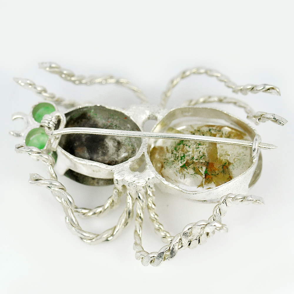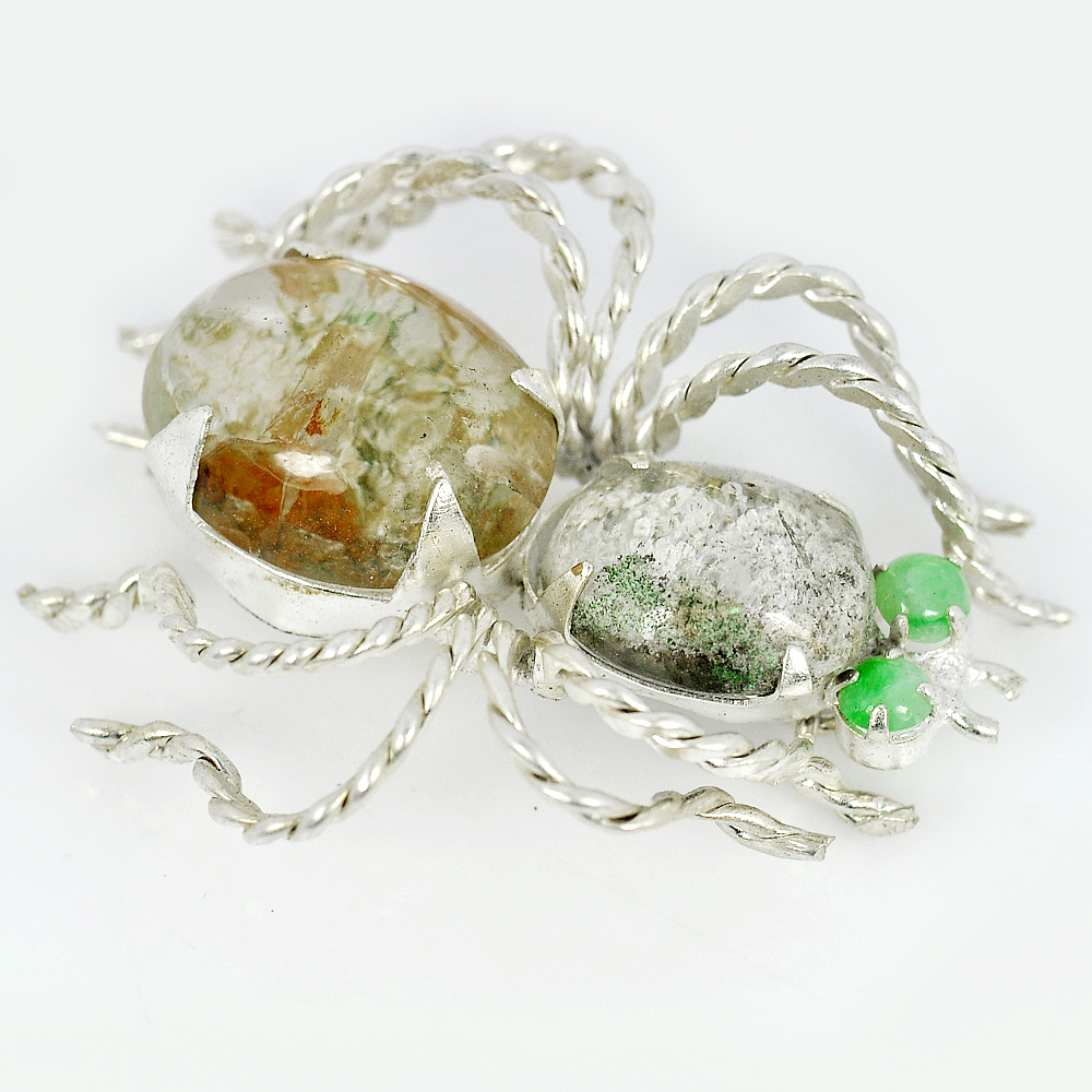White Quartz Spider Brooch Fashion Nickel Eye Green Jade 49 Ct.Natural Gemstone
