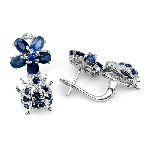 11.67 G. Natural Gems Blue Sapphire Real 925 Sterling Silver Jewelry Earrings