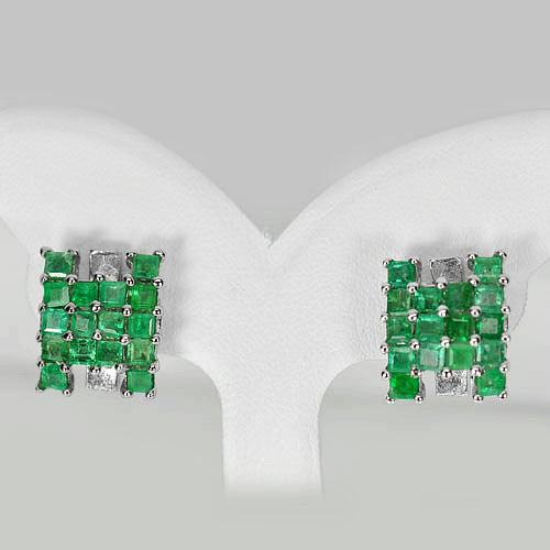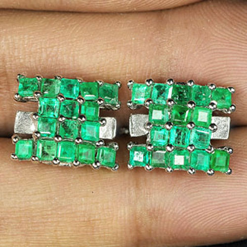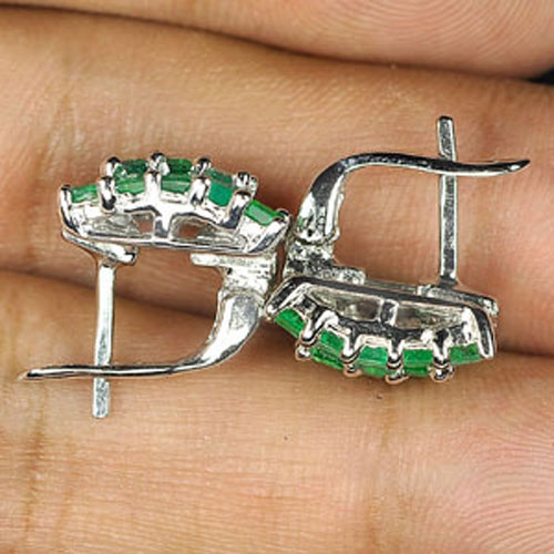 6.04 G. Natural Gemstone Green Emerald Real 925 Sterling Silver Jewelry Earrings